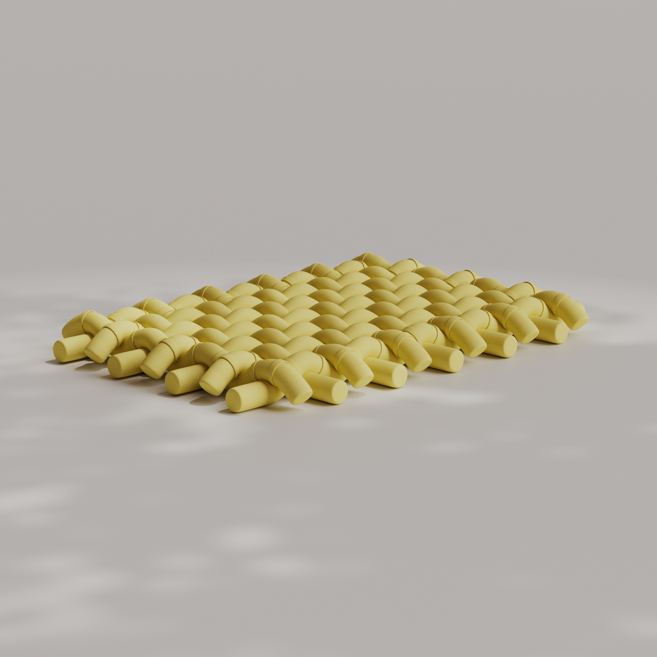 The Zooom Rug is a bold piece that functions both as a rug and as a comfortable daybed. Its oversized, playful weaving pattern invites relaxation, power naps, and everyday use, while reinterpreting one of the oldest textile techniques in a modern way. Each padded tube features a zipper and can be individually disassembled, making it easy to wash if needed. The piece is upholstered in a knitted yellow or brown Kvadrat fabric, adding warmth and texture to its sculptural form. The Zooom Rug brings both functionality and character to contemporary interiors.